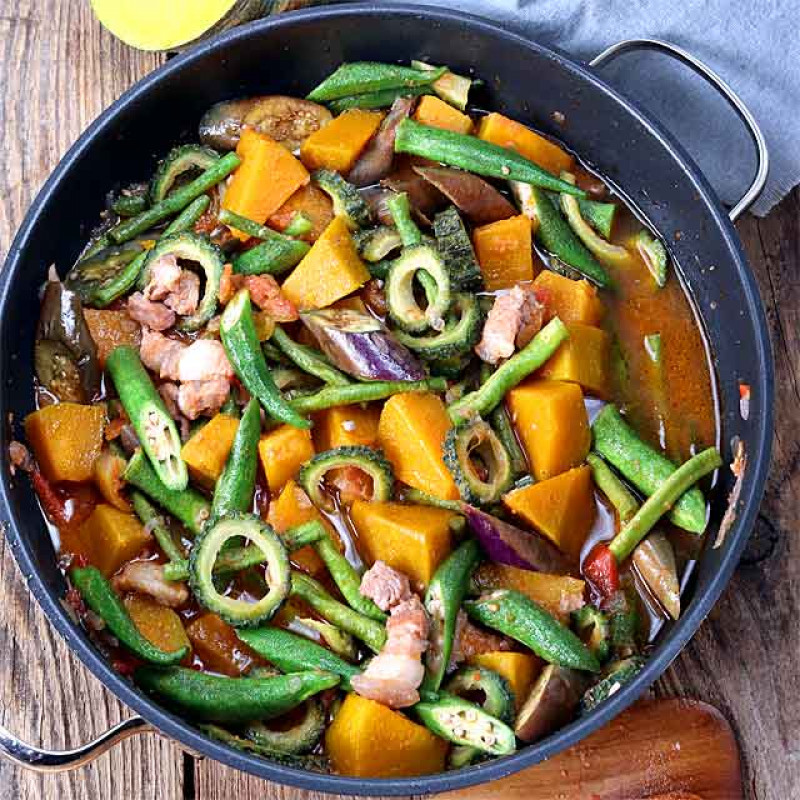 Our Pinakbet Party Tray is made with fresh vegetables like bitter melon, eggplant, okra, and squash — all perfectly sautéed with shrimp paste and tender pork or shrimp. It’s the true Filipino comfort food!