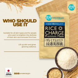 Is an instant and convenient way of keeping skin hydrated with rice bran extract, vitamin C, collagen and hyaluronic a . When used, the liquid in the sheet mask can help reduce dark spots. For a quick and long lasting glowing skin, use Amaterasu Rice Charge Premium Mask.